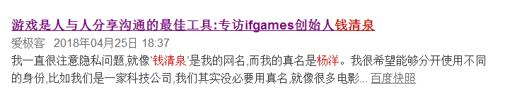 杨洋是他的真名,而他现在的微博名字叫钱清泉,也没有认证。