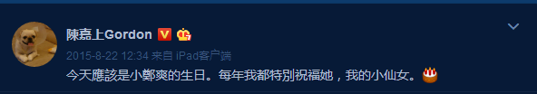 陈嘉上可以说是非常喜欢郑爽,亲昵地称她是自己的“小仙女”。