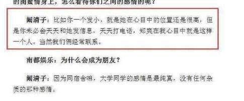 接受南都的采访时阚清子说,自己与郑爽的感情像是发小,就算不用天天联系,心里永远有个很高的位置。