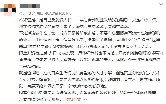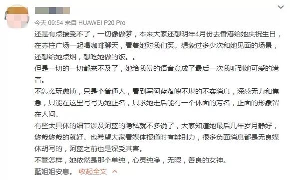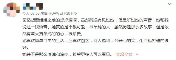 从粉丝的描述看,离世前的蓝洁瑛,虽然生活不富裕,但已经过上了平静舒适的生活。