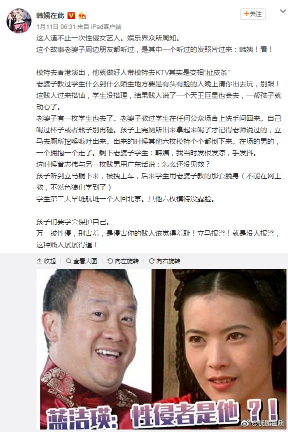 当然,她情绪不稳定的根源,莫过于两次被娱乐圈知名大佬强暴一事。