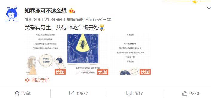 当时鹿姐微博下面还有有上千人转发评论表示“深有同感,老油条们不带我们吃饭不帮我们叫奶茶不给我们喂奶好委屈嘤嘤嘤”,结结实实把我吓了一跳——