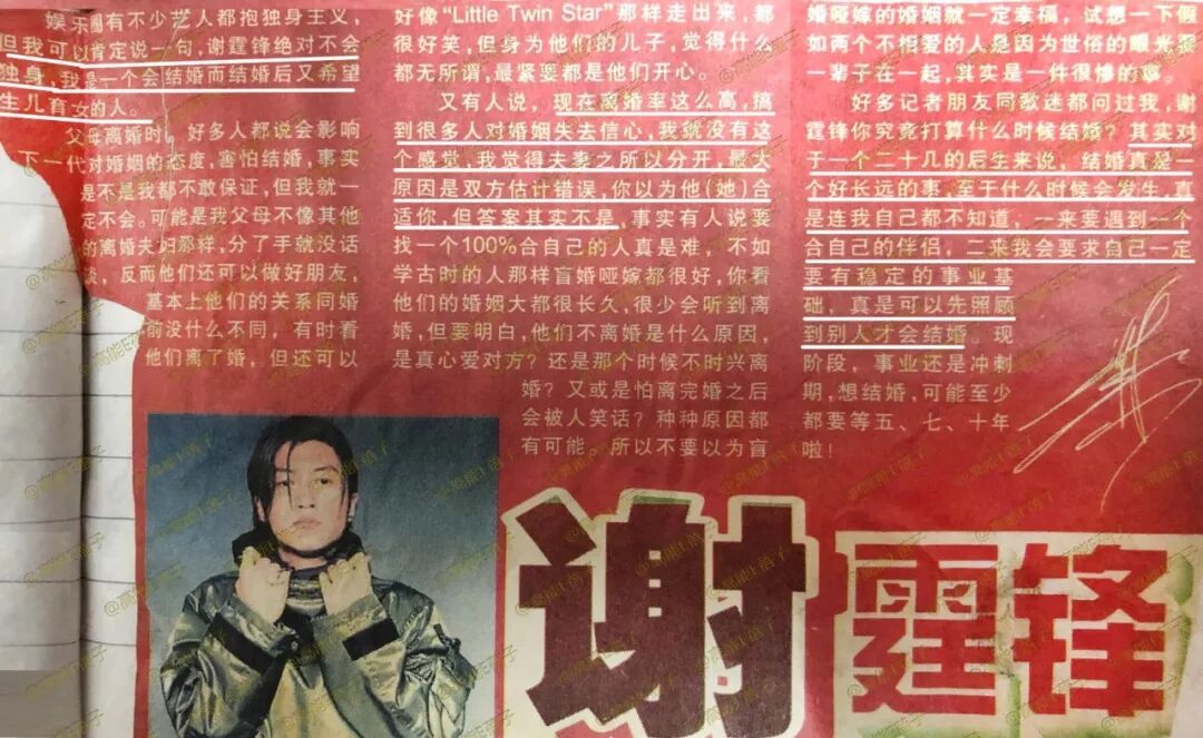 只是在锋菲芝大三角期间,主持人提到王菲的时候,谢霆锋想了好久,说“不知道”,而后还是补充了,最欣赏她的“思维方式”。