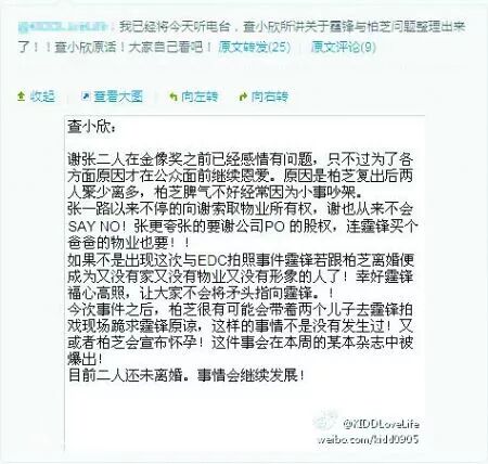 张柏芝脾气不好经常因为小事吵架;张不停向谢索取物业所有权,连公司的股权也要……还说她可能会“带着儿子向谢霆锋求原谅,这种事不是没发生过”,似乎印证不雅照期间张柏芝跪求谢霆锋的传闻。