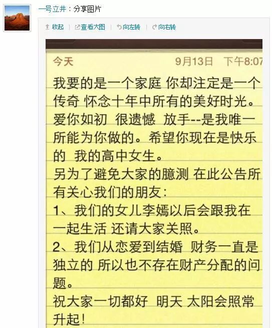 2013年,李亚鹏和王菲在乌鲁木齐离婚。王菲又开始在微博上逗趣,插科打诨。李亚鹏则开始自剖——我注定不是传奇身边的丈夫,更没有能力做“女高中生”王菲身边的那个男童鞋。