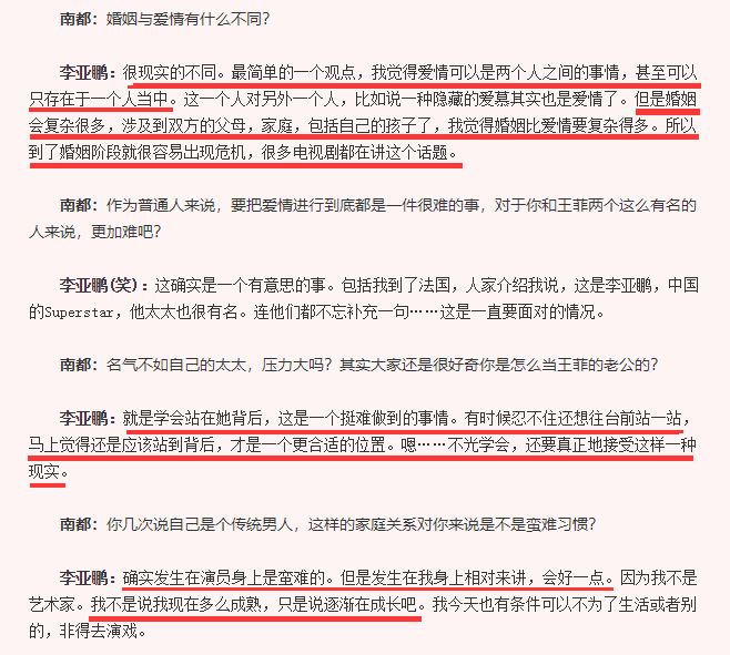 在面对媒体的采访里,李亚鹏也早适应了这种“站在她背后”的既视感,他从不否认王菲的“天后地位”给她带来的压力。