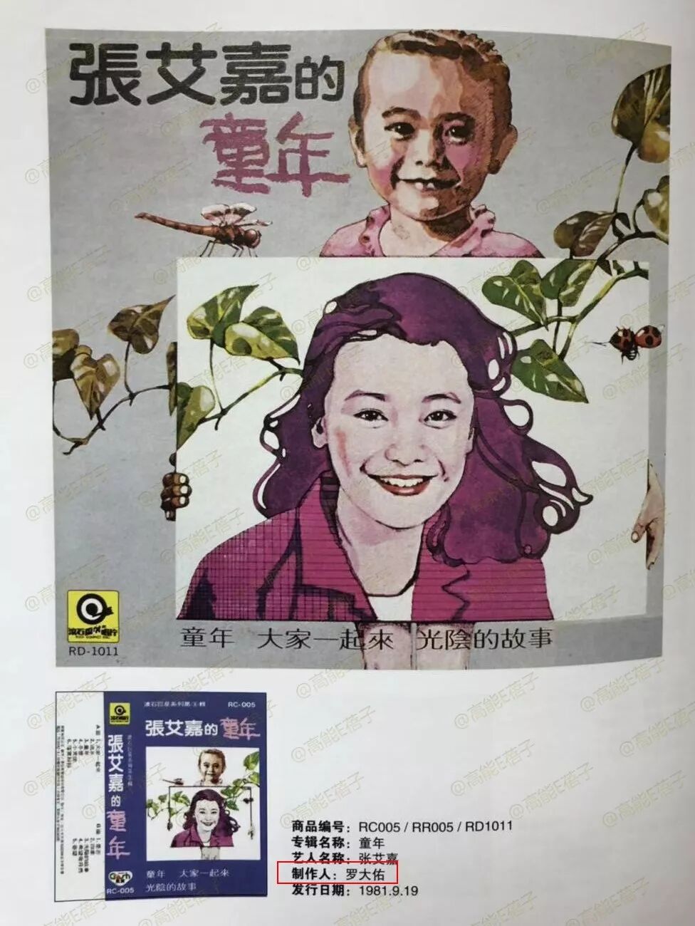 到了音乐领域,罗大佑第一次当专辑制作人,做的就是《张艾嘉的童年》专辑。