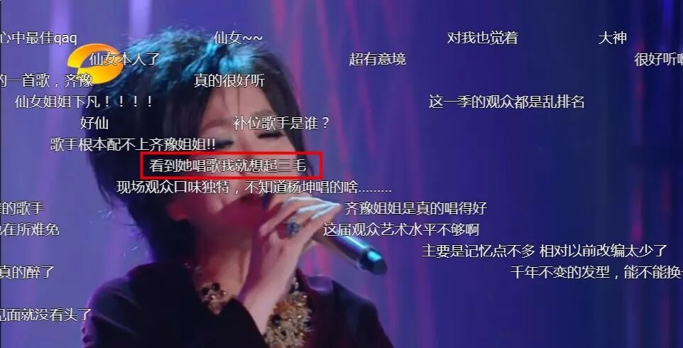 要说槽点,弹幕上主要集中在她几十年如一日的发型和服装。芒果台Tony在齐豫姐姐这里失效了。
