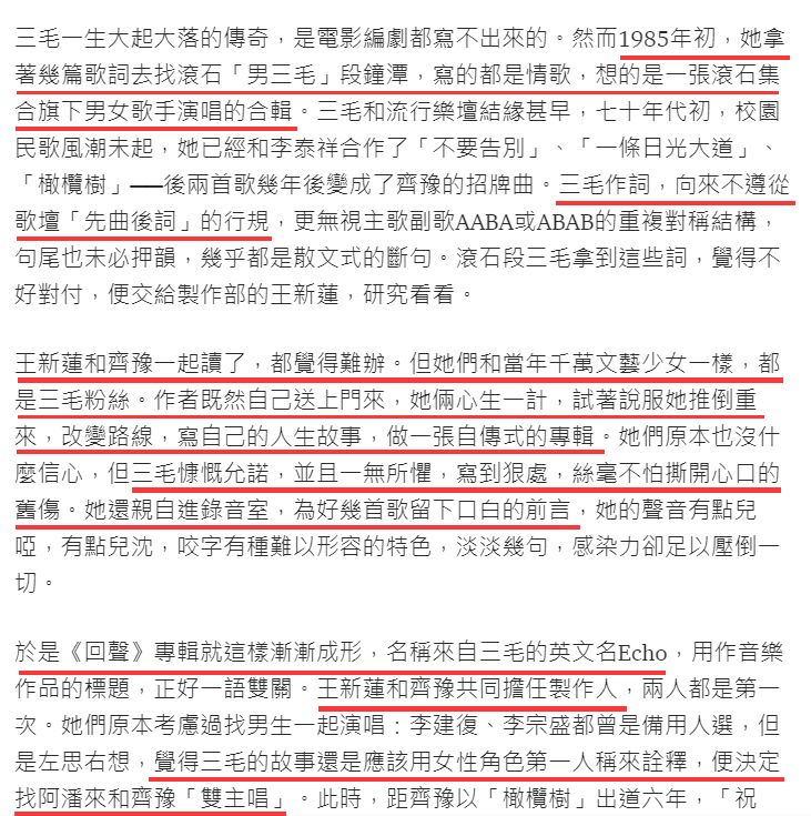 但多年后齐豫有在怀疑当时让她改是不是一个对的选择(来源:马世芳《耳朵借我》)