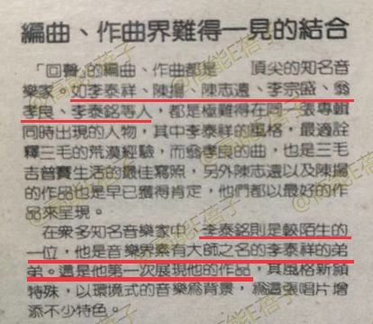 原定的片名在那个时代没有通过,后来他们随意选了《搭错车》倒过审了(来源:中国报)