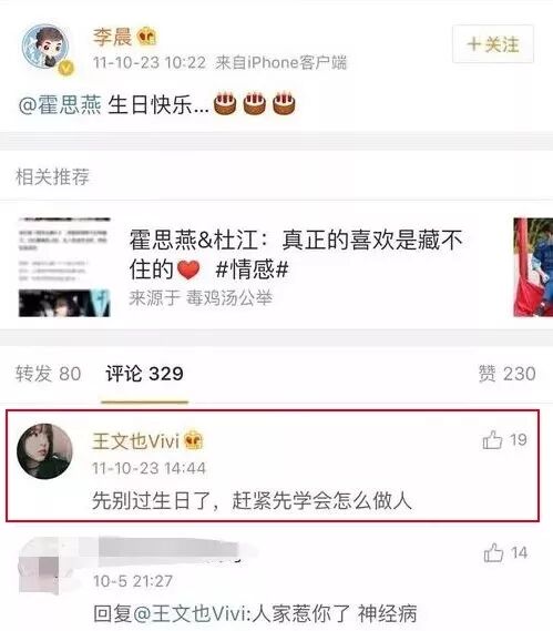2011年,王文也因为霍思燕和王中磊的绯闻,跑到李晨的祝福微博下评论,让霍思燕回家学会做人……也算保家护妈小帮手,这点不值得尬嘲。