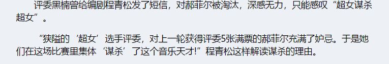 但也有没有可能,是因为大家对“能力较强”的选手有天然排斥呢?郝菲尔在上一轮拿到五个评委的全票,会不会引发别人的嫉妒呢?