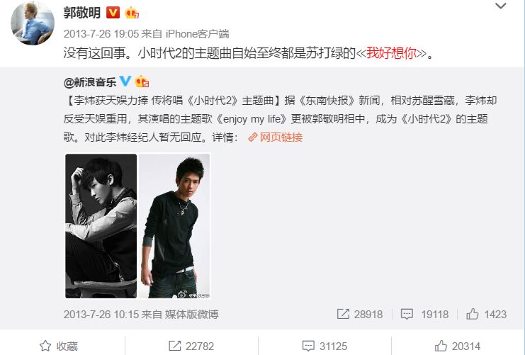 当时粉丝指责天娱对武艺过于压榨商业价值,不注重培养后续发展,这条微博26分钟内转发量达上百万(那个时候没啥水军和抡博),就算是放在现在,这也是顶流待遇。