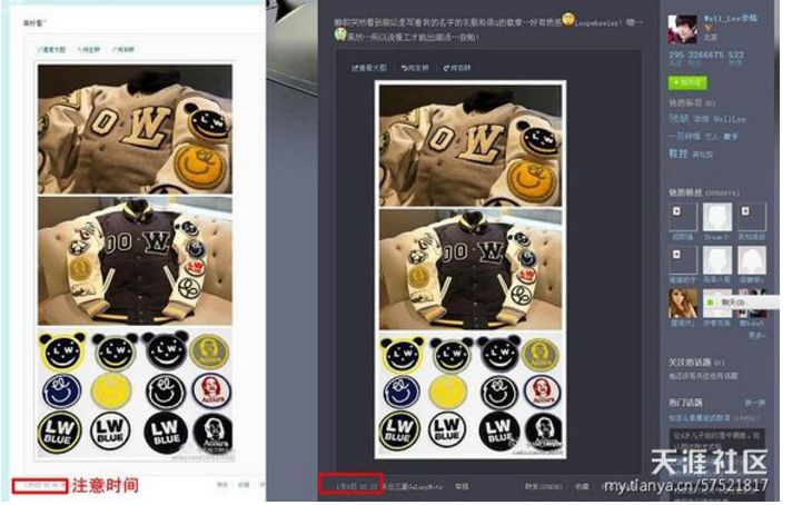 其中有一张图是一件衣服,之后相隔不到10分钟,李炜的微博也发了一张同样的图片,并且小号的图片比李炜的更加清晰更加大。