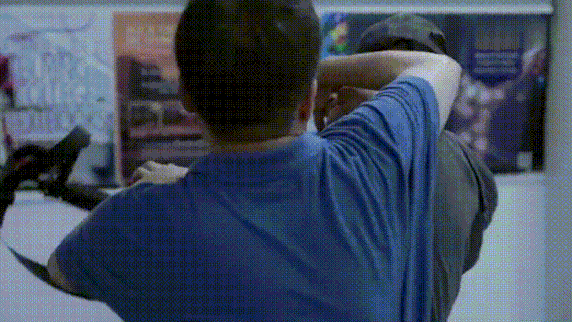 本来一直是磨叽、婆妈人设的黄成栋突然一秒切换回“刘华强”模式,逆着逃亡的人群,徒手斗歹徒,拯救回被困的儿子。