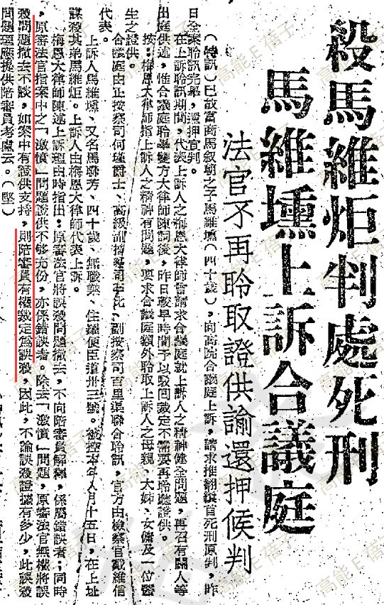 虽然友人证词指向他精神有问题,但陪审员还是一致裁定,马维壎谋杀罪名成立,判处缳首死刑。