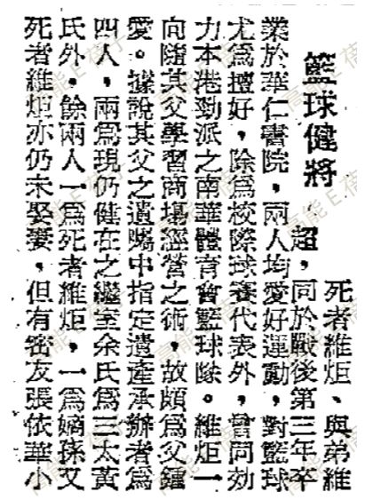 次子伦修、四子维烈也早逝,剩下的就是凶案当事人——分别为三子、五子的维壎和维炬。后面的第六子维超则是三太黄氏所生,很早就出国(后竟和五哥维炬同年去世)。