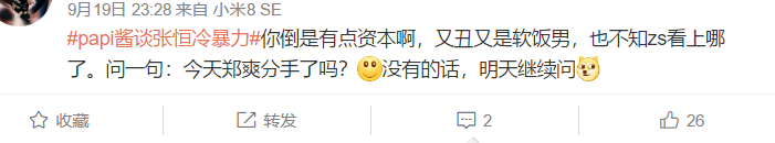 但郑爽曝光恋情的方式实在太迷,她和张恒的感情也不被看好。8月26日,有网友在张恒微博下留言“她不会拥有感情的不看好你们……”