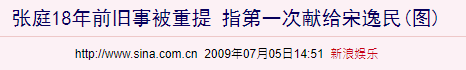 不知是不是因为弟弟演戏的关系让宋逸民认识了张庭。多年后张庭爆料,宋逸民在18年前跟她表白,她还把“第一次”给了宋逸民。