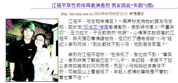 在《孽子》里饰演阿凤的马志翔还和江祖平交往过,当时有传江祖平“双性恋”,马志翔因此而闹失踪。