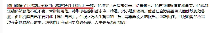 为追回事业,年过四十的陈山聪拼命健身,减掉“油腻肥”。走起专情路线,现在正准备和新女友Apple结婚。