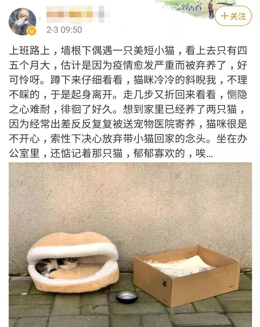相反,那些因为听信“武汉猫友群无一人感染”而抢购猫的人,和那些因为一星半点恐慌性消息就丢弃宠物的人,本质上是同一类。