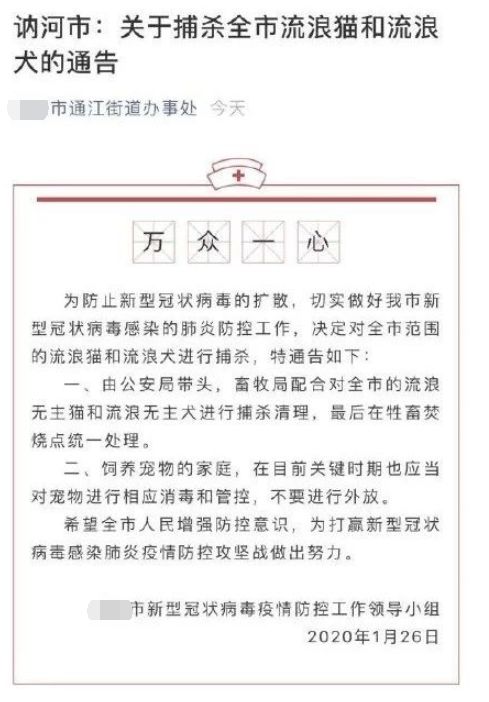 果不其然,当“养宠物有被感染风险”的说法出现,甚至还没有得到证实的时候,各种弃养、杀害、“无害处理”一类新闻出现了。