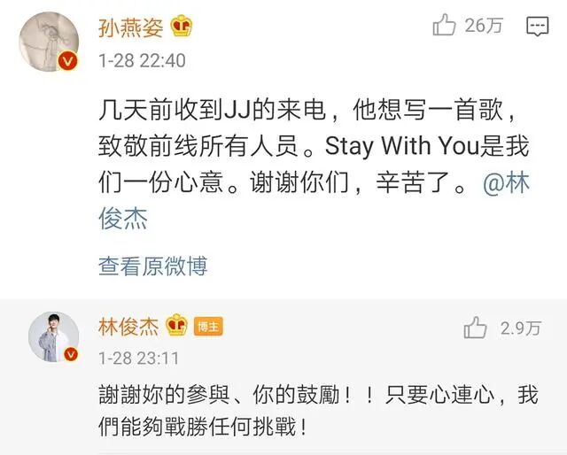 林俊杰的《stay with you》还邀请了孙燕姿一起完成。