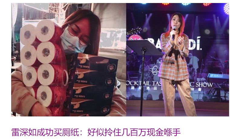 最夸张的是一位歌手雷深如,买到两条厕纸,说:“好像拿了几百万现金在手上那么高兴!”