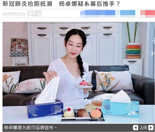 杨卓娜以前还曾为纸品做宣传,这次她在网上疑似叫人囤厕纸,被网友视为抢厕纸潮的“幕后推手”。