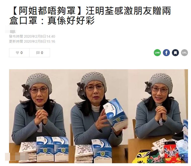 毕竟同期的新闻是“阿姐都不够罩”——特殊时期还要拍戏、开会的汪明荃,手头口罩只够用五天,老公罗家英也不够口罩用。