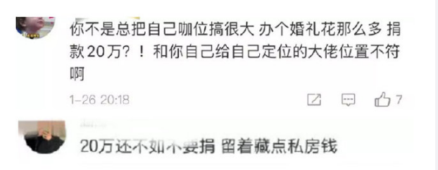 疫情刚开始的时候,很多人看到黄晓明与ab合计捐了20万,跑到黄晓明微博底下开骂。