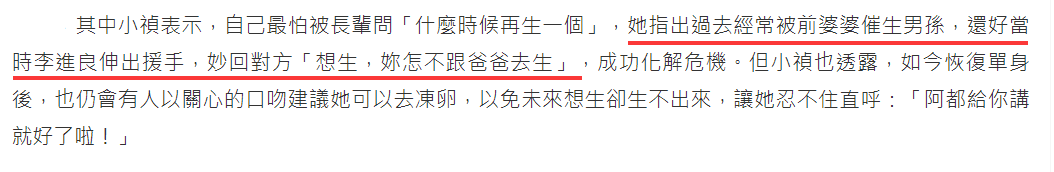 总之何家香火一定要有男孙继承,小娴才算完成家庭使命。否则,无论她多孝顺,多贤惠,多优秀,都会让何家妈妈成为“全台最没尊严”的人。