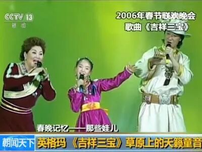 英格玛更出圈,她就是当年唱《吉祥三宝》的小女孩。和姑姑乌日娜、姑父布仁巴雅尔因为这首歌爆红,还上了春晚。