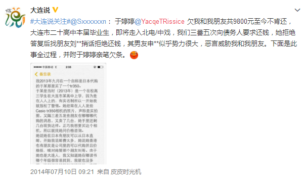 但她是个隐藏的瓜主,原名于婷婷。2014年,微博上有人爆料她在网上做代购骗了自己上万元,男友还态度恶劣威胁对方,这事在一些论坛上也闹得很大。