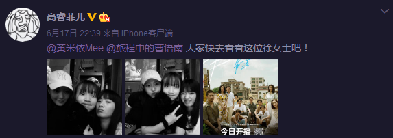 她和音乐剧班的黄米依、英格玛关系很好,前阵子还在帮黄米依宣传新戏。