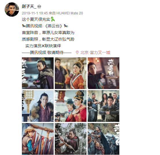 赵子天演了唐嫣新戏《燕云台》,还未开播。