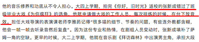 可也因为拍这部剧,他错过了毕业大戏的选角,只能做大戏的工作人员,最后是在临时出现角色变动时替补进去的。