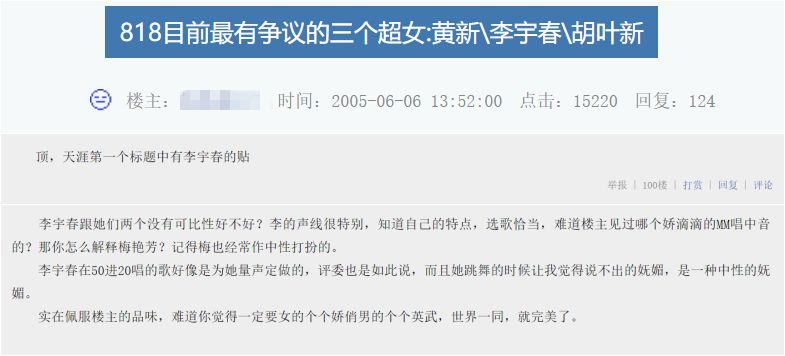作为初代民选偶像,李宇春可以算是最早期的路人争议+粉丝拥簇的代表。