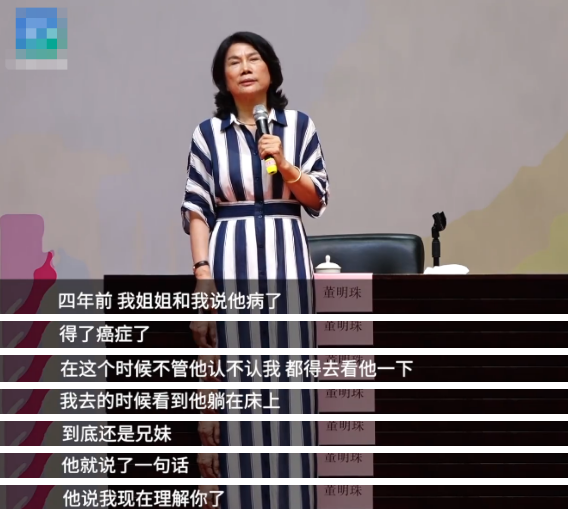 在断交二十几年后,董明珠得知哥哥得了癌症,第一反应却是“不管他认不认我,我都要去看看他”,而哥哥也对她当年的决绝表示了理解,董明珠这才释怀:“我觉得很欣慰”。