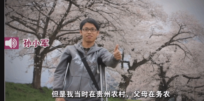 贵州农村的孙小军,小时候打球摔伤不得不截肢,父母务农,家里连给他安装义肢的经济条件都没有。