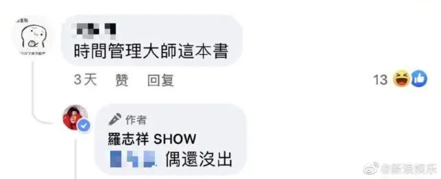 自己的梗也照玩不误,网友问他“时间管理大师这本书呢?”,罗志祥回复“还没出”。