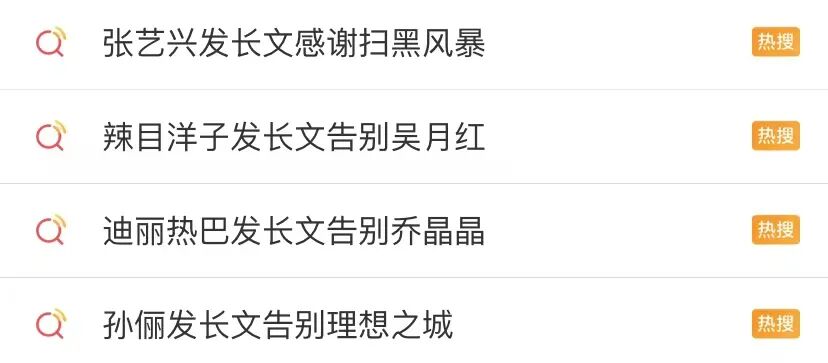 明星在微博发一个小作文,微博词条马上跟上一个“XX发长文告别XX”,再顺势推上热搜,形成了完美的宣传闭环。