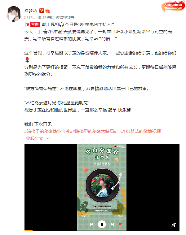 徐梦洁则给丁羡专门做了一个“语音电台”,这方式倒有点创意。