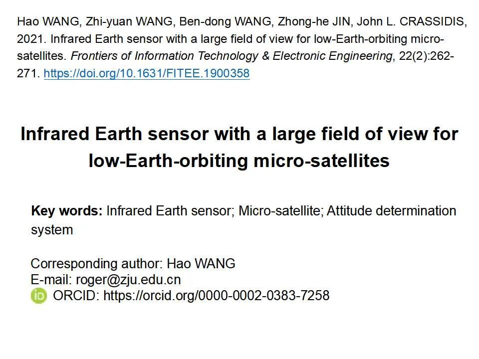 Hao WANG, Zhi-yuan WANG, Ben-dong WANG, Zhong-he JIN, John L. CRASSIDIS, 2021. Infrared Earth sensor with a large field of view for low-Earth-orbiting micro-satellites. Frontiers of Information Technology & Electronic Engineering, 22(2):262-271. https://doi.org/10.1631/FITEE.1900358 |