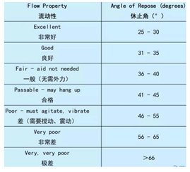 安息角又称休止角,是粉体堆积层的自由斜面在静止的平衡状态下,与水平面所形成的最大角。常用的测量方法是固定圆锥法,即将粉体注入到某一有限直径的圆盘中心上,直到粉体堆积层斜边的物料沿圆盘边缘自动流出为止,停止注入,测定休止角。一般来说,粉体的粒径越小,粉体之间的作用力越强,休止角越大。![]()