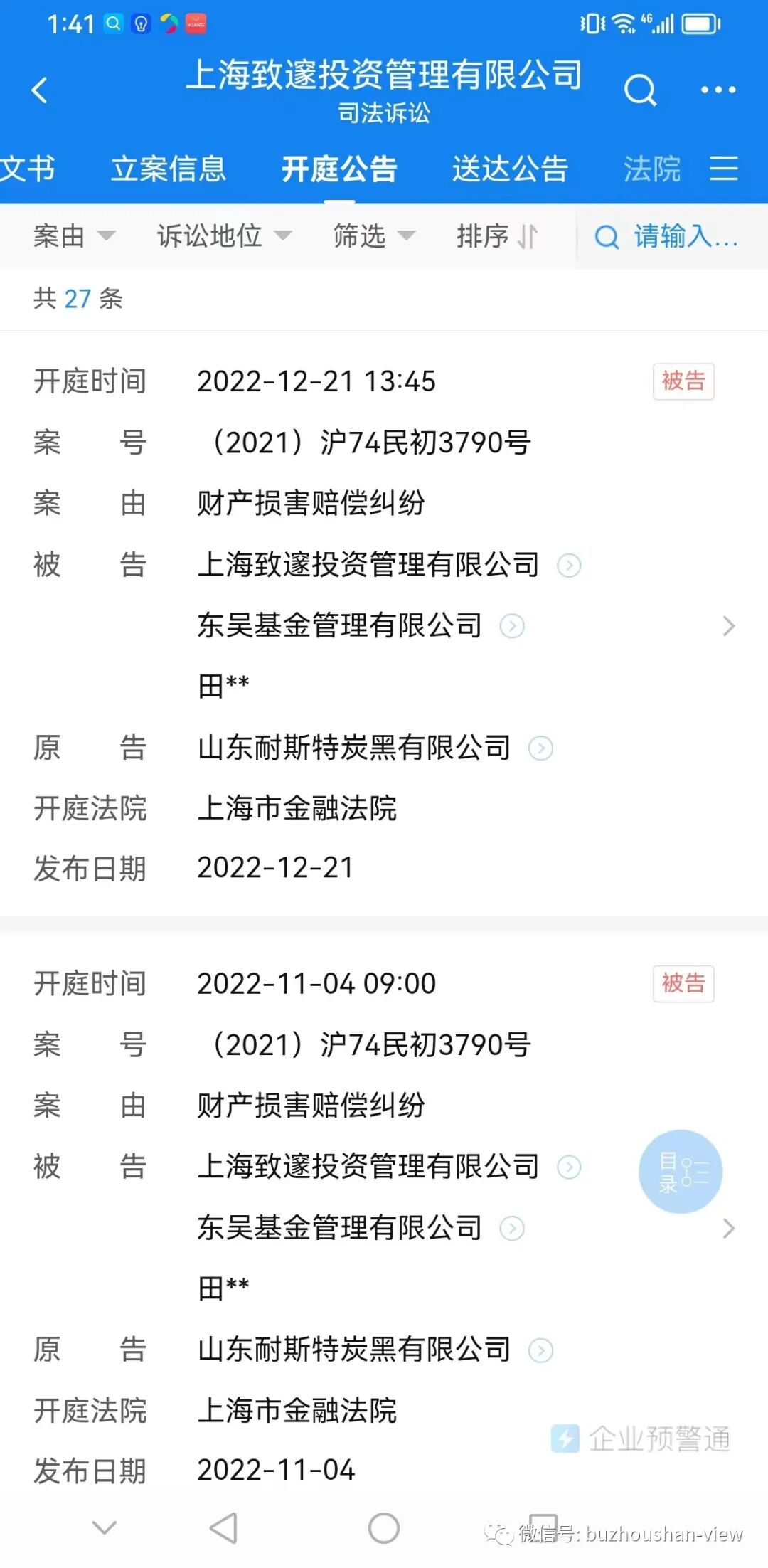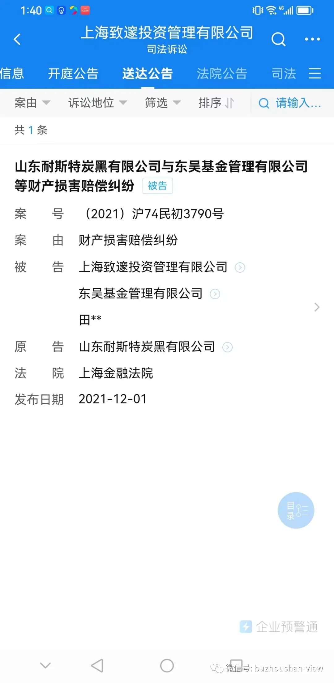 下面,我们接着来看看上海致邃投资管理有限公司这个公司的纠纷与诉讼情况。