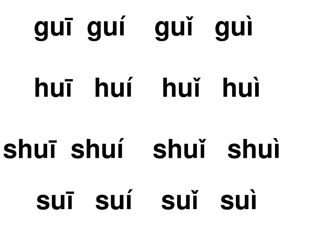 ui:发音时,u 的发音轻短,然后滑向 ei,嘴形由圆到扁。