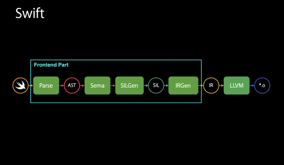 然而,SIL 的设计就将这些问题全部解决。swift 是一个包含 clang 然后又做了许多优化的编译器前端,它的核心是 Swift Intermediate Language (SIL)。SIL 是 Swift 编译器在 AST(Abstract Syntax Tree)和 LLVM IR 之间的中间表示。也可以说 Swift 语言的绝大部分特性都取决于 SIL 所做的优化。