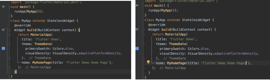 Flutter官方提供两种快速调试方法,一种是HotReload,另一种是HotRestart。前者无感知局部刷新,体验最好,但是缺点也很明显,适用比较局限,可以参考官网给出样例:HotReload(https://flutter.dev/docs/development/tools/hot-reload),主要有这几种场景不适用: